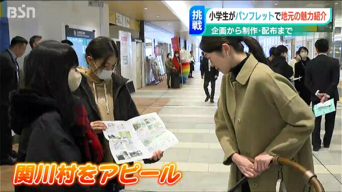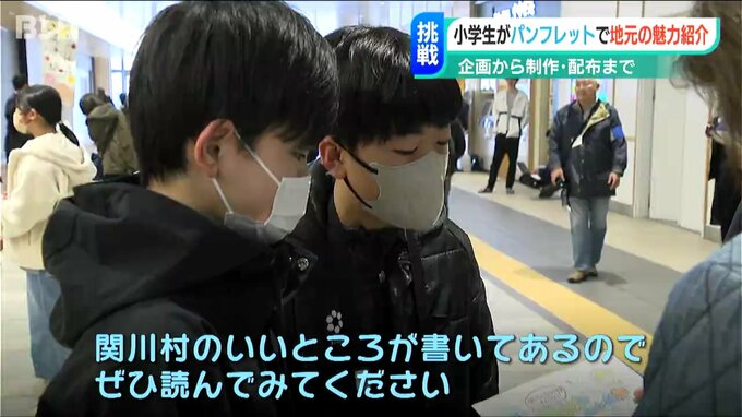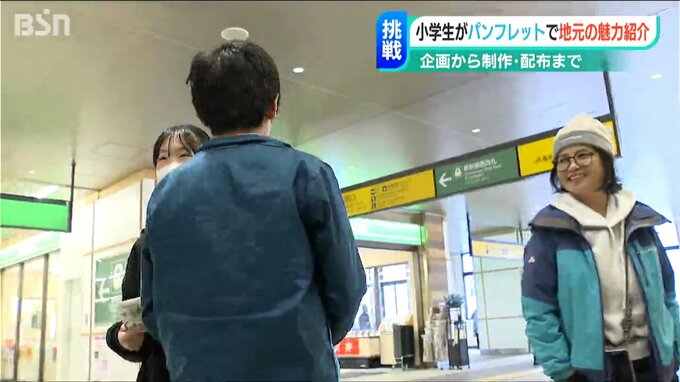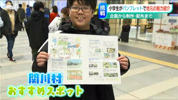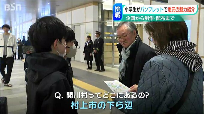 関川小学校の6年生がJR新潟駅の利用者に配っているのは関川村の魅力が詰まったパンフレット。おすすめの観光スポットなどが描かれています。地元の魅力をたくさんの人に知ってもらうために企画から製作まで子どもたちが担当しました。