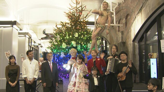 イベントが開催された日比谷OKUROJIでは、11月30日(木)から12月25日(月)まで、東さんが描いた62体の妖怪が展示され、クリスマスツリーにもたくさんの妖怪が飾られています。イベントではツリー点灯式とともに、東さんが率いる義足のダンサー、全盲のシンガーソングライターなど多様な個性を持つパフォーマーが集まる「まぜこぜ一座」がパフォーマンを披露しました。