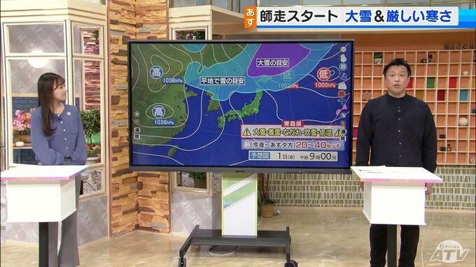 30日夜から12月1日朝にかけても雪雲が次々と流れ込んでくる津軽・下北・上北北部方面です。1日の朝にかけて30日朝と同じか、それ以上にさらに積もるというところもありそうです。その後も雪雲の流れ込みが収まる気配がありません。お昼前になりますと一部が秋田県に近いところでは降り方の強まる時間帯も出てきます。