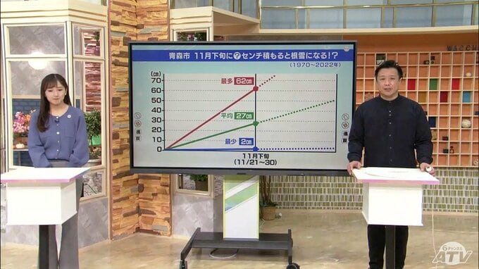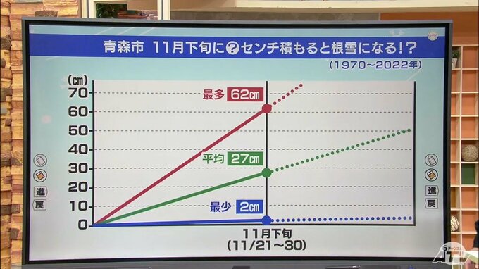さて11月がもう終わりますけれども、青森市では11月下旬に雪が何センチ積もると根雪になるのかというデータをご紹介いたします。