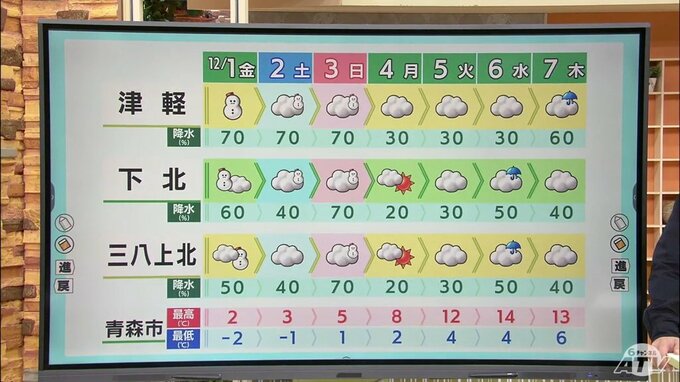 週間予報を見ていきますと、どうやら12月3日(日)以降になってきますと、暖気優勢となりますので積もる雪よりも溶ける雪に注意が必要となります。来週はだいぶ雪が解けて、根雪はまだ先になりそうです。