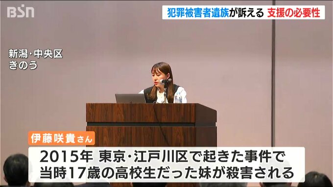 2015年に殺害された当時17歳の女子高校生の遺族が新潟市で講演し、被害者遺族の苦しみや悲しみについて語りました。