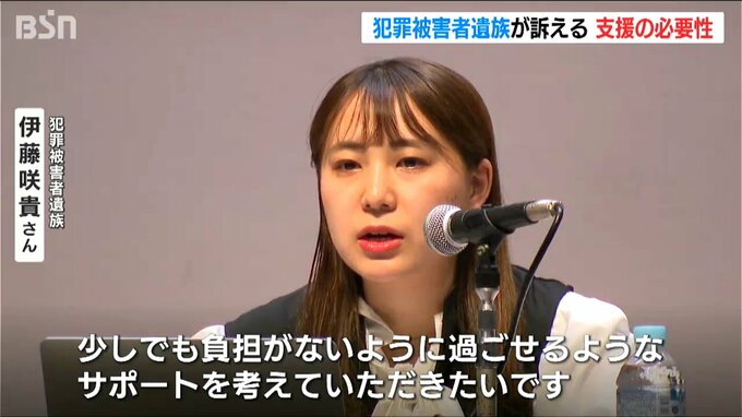 犯罪被害者と遺族を支援する連絡協議会のメンバーや警察、市町村の担当者らおよそ130人を前に伊藤さんは、自身の経験を踏まえ被害者支援の必要性について訴えました。