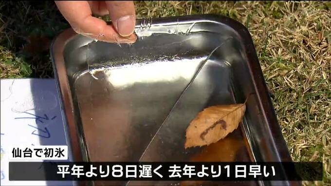 tbc本社では容器に入れた水にうっすらと氷が張りました。仙台管区気象台は明け方、仙台の初氷を観測しました。平年より8日遅く、去年より1日早い観測です。