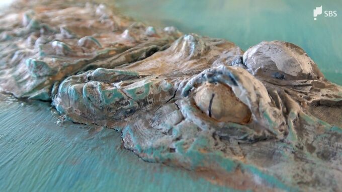 この展示の作者は、東京芸術大学美術学部の國司真音さん。2023年の夏休みに熱川バナナワニ園でワニについて研究し、立体的に表現しました。