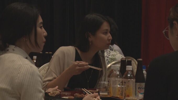 イベントの参加者は琉球舞踊やエイサーといった伝統芸能と、沖縄をテーマにしたヒット曲メドレーを楽しみながら、ジューシーやスクガラス、ミミガーなどの伝統的な料理に舌鼓を打っていました。