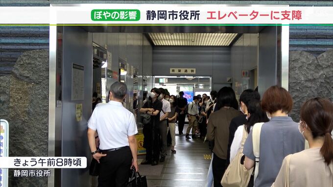 7月3日、静岡市役所のエレベーターホールで発生したぼやの影響で、エレベーターの稼働に支障がでています。出勤時間帯には、エレベータを待つ人で、行列ができました。<静岡市役所職員>「本日は、エレベーター1…