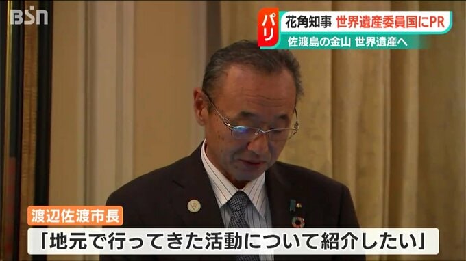 来年の世界文化遺産登録を目指す「佐渡の金山」。花角知事は、登録の可否を審査するイタリアやウクライナなどの世界遺産委員国の大使らに地元の熱意を英語でアピールし、渡辺市長も「地元で行ってきた活動について紹介したい」と続きました。