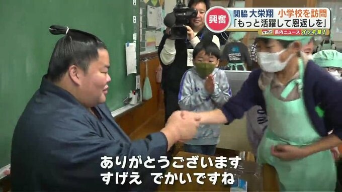 今月4日の大相撲菊陽場所を前に、関脇の大栄翔(だいえいしょう)が熊本県菊陽町の小学校を訪れました。