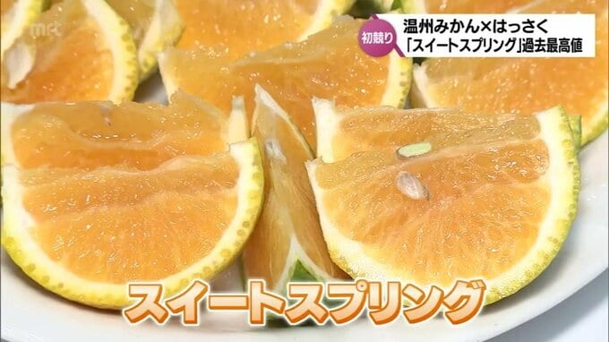 宮崎県綾町特産のかんきつ「スイートスプリング」の販売が解禁となりました。初競りでは、1箱5キロが、過去最高値で取り引きされました。温州みかんとはっさくをかけ合わせたスイートスプリング。現在、綾町では、1…
