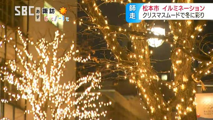 16日から国宝・松本城などを舞台に始まるイベントに先駆けて、1日から始まったイルミネーション。長野県松本市の中心部から松本城へと続く大名町通り(だいみょうちょうどおり)では、街路樹に取り付けられた電飾…