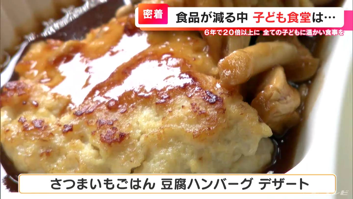 この日のメニューは、さつまいもごはんと豆腐ハンバーグ、そしてデザートの3品。