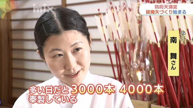 日本で最初に創建された天神様とされ、正月には多くの人が参拝に訪れる防府天満宮で破魔矢づくりが始まりました。破魔矢には1年の災いを防ぎ、1年の幸運を射止めるという意味が込められています。4人のみこが天満…