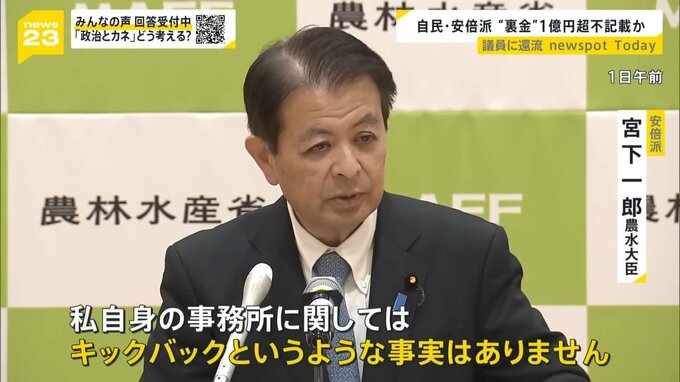 一方「自身はキックバックを受けていない」と明言した大臣も。