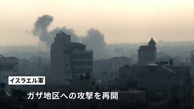 イスラエル軍はパレスチナ自治区ガザでのイスラム組織ハマスに対する攻撃を再開しました。攻撃によりガザでは半日で170人以上が死亡したとみられています。記者「かなり低く鈍い音がむこうの方角で鳴りました。ガ…