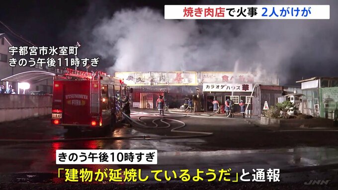 きのう夜、宇都宮市の焼き肉店で火事があり、2人がけがをしました。きのう午後10時すぎ、宇都宮市氷室町で、「建物が延焼しているようだ」と通報がありました。警察などによりますと、火はおよそ2時間後に消し止め…