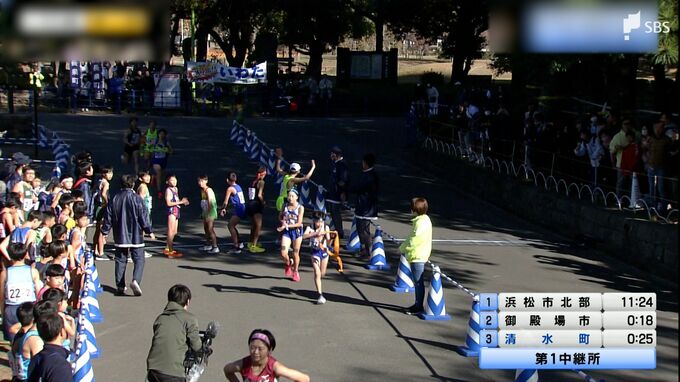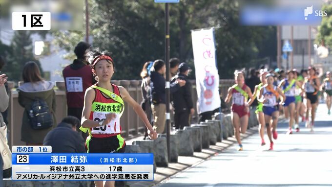 高校生年代の女子トップランナーが競う、花の1区。抜け出したのは、3000メートル県高校ランク1位、浜松市北部の澤田。2位に18秒差をつけて、タスキをつなぎます。