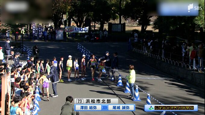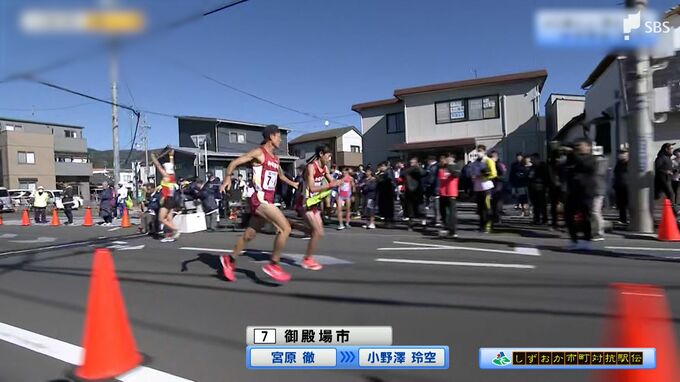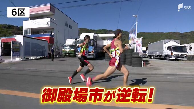 レースは40歳以上が走る6区で、2位の御殿場市がトップに迫ります。