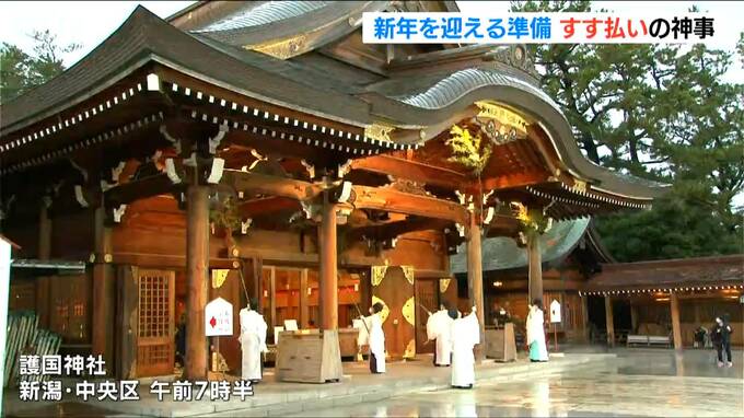 新潟市中央区の神社で新年を迎える準備が進められています。3日、毎年恒例となるすす払いが行われました。新潟市中央区の護国神社で3日の朝に行われた、毎年恒例のすす払い。装束に身を包んだ神職が『斎竹(いみた…