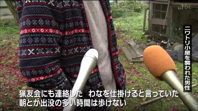 「(妻が家の中から)懐中電灯を照らしたらクマの背中が見えた」