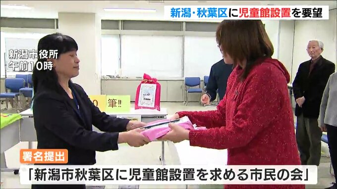 新潟市の8つの区のうち児童館が唯一設置されていない秋葉区に4日、市民団体が設置を求める署名を新潟市に提出しました。