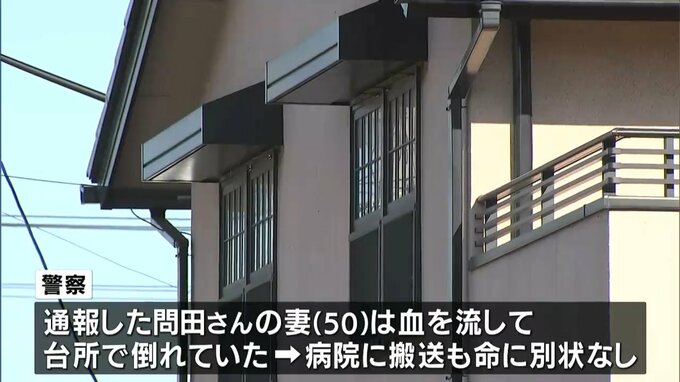 また「刺された」と警察に通報した問田さんの妻(50)も1階の台所で血を流して倒れていて、病院に搬送されましたが命に別条はないということです。