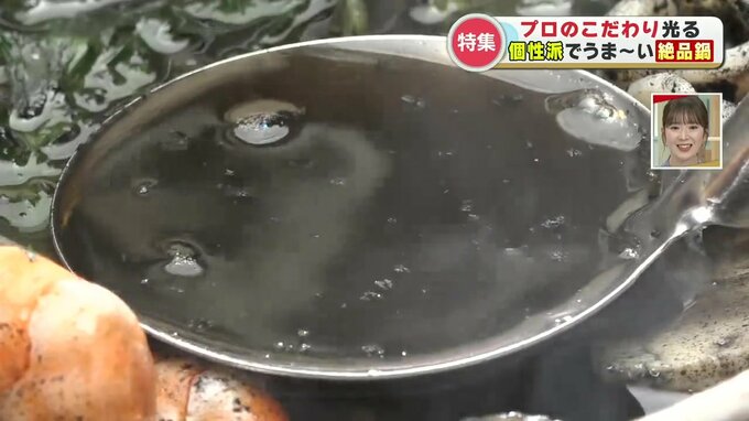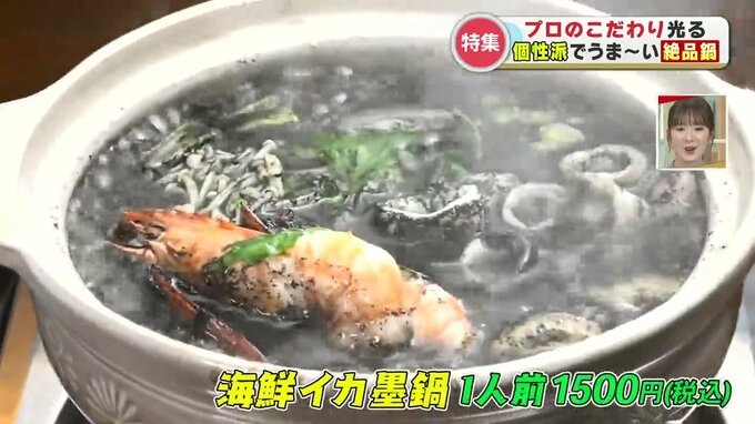 リポーター「おいしい。とてもイカ墨のスープと相性がいい。イカ墨のパスタは聞きますけれど、鍋というのは珍しいですよね」