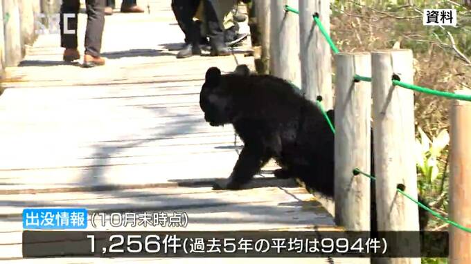 また、里での出没情報は、最新の10月末までの速報値であわせて1,256件あり、過去5年間の平均の994件と比べるとやや多くなっています。