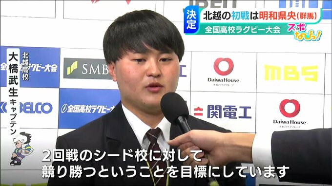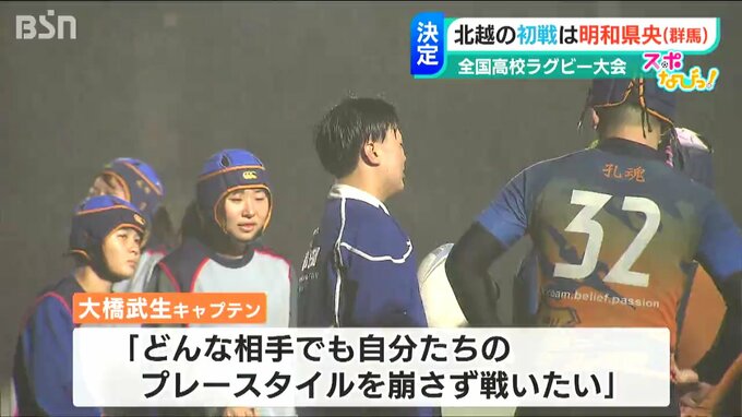 【北越高校 大橋武生 キャプテン】「積み上げてきた練習であったり、前に出るディフェンスであったりモールを強みにして戦っていきたいと思っています。まずは初戦を突破して2回戦のシード校に対して競り勝つということを目標にしています」