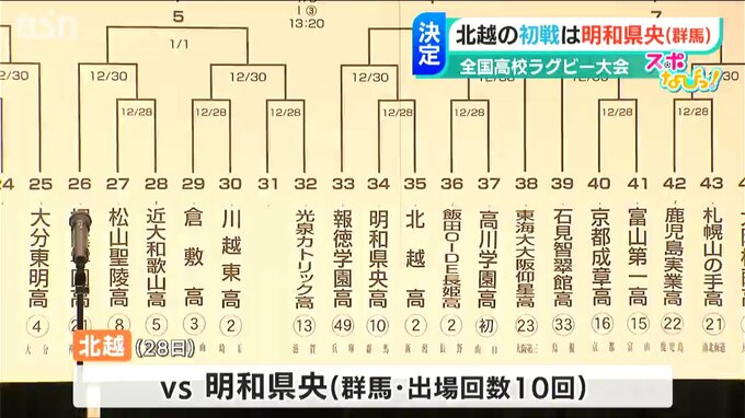 全国高校ラグビー大会の組み合わせ抽選会が4日行われ、新潟県代表の北越の初戦の相手は群馬県代表の明和県央に決まりました。