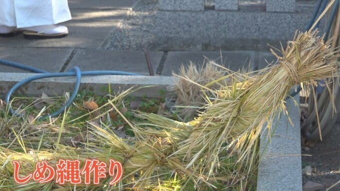 また境内にある田んぼ(御神田)では、10月上旬に稲刈りをしたわらを使って来年1年間、拝殿にかけられる、長さ6mのしめ縄を作りました。