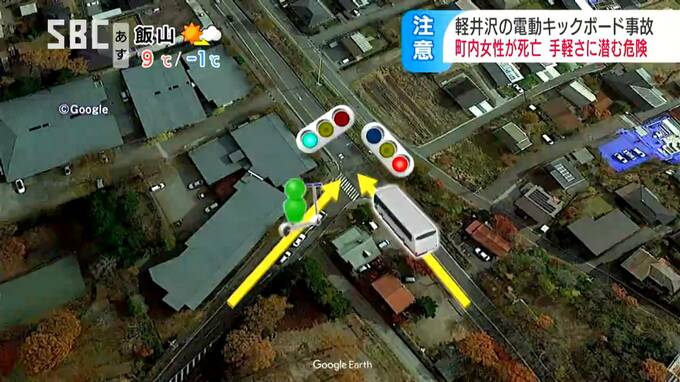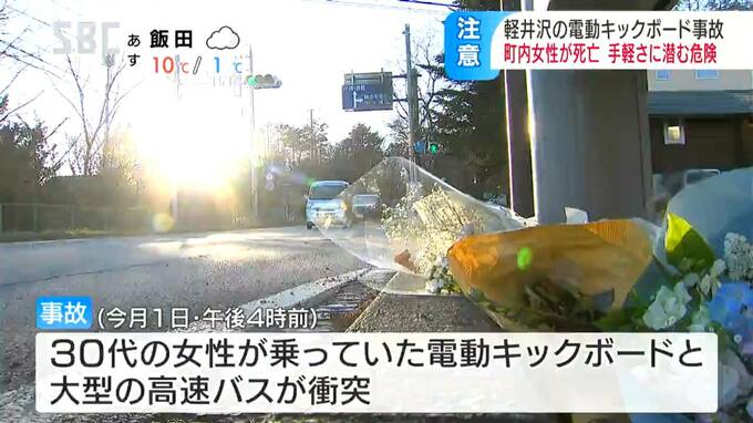 軽井沢町で12月1日、大型の高速バスと衝突し、電動キックボードに乗っていた女性が死亡しました。