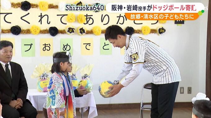 38年ぶりの日本一に貢献した阪神タイガースの岩崎優投手が12月4日、出身地・静岡市のこども園を訪れ、子どもたちにドッジボールをプレゼントしました。