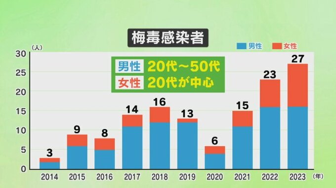 性感染症の1つ「梅毒」の感染者が全国的に増加し、県内の感染者が過去最多となっています。