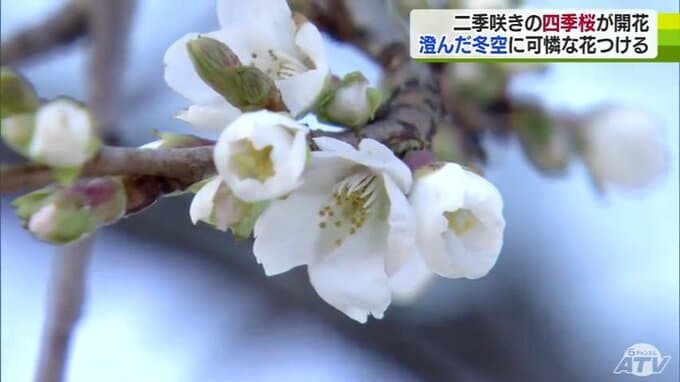 4日の青森県内は各地で青空が広がった所が多くなり平年並みの気温となりました。こうした中、青森県野辺地町で二季咲きのサクラが開花しています。小林憲治記者「雪も積もり出している12月ではありますが、こちら…
