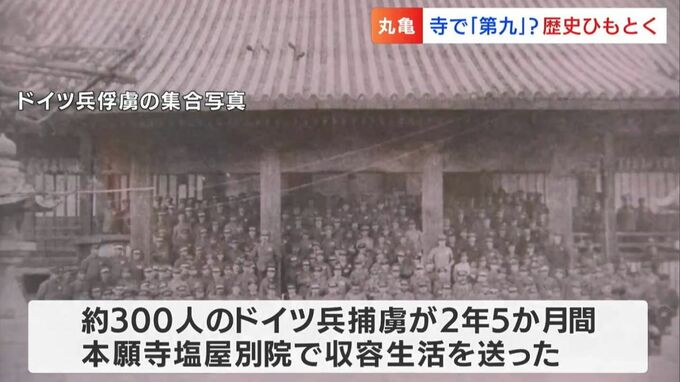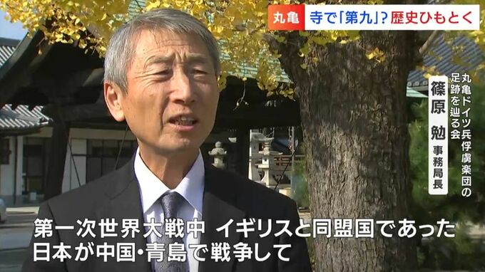 (丸亀ドイツ兵俘虜楽団の足跡を辿る会 篠原勉事務局長)「第一次世界大戦中、イギリスと同盟国であった日本が中国・青島で戦争して、そこで勝利したということで、そこでドイツ兵俘虜収容所ということで、ここの塩屋別院が場所として与えられて」