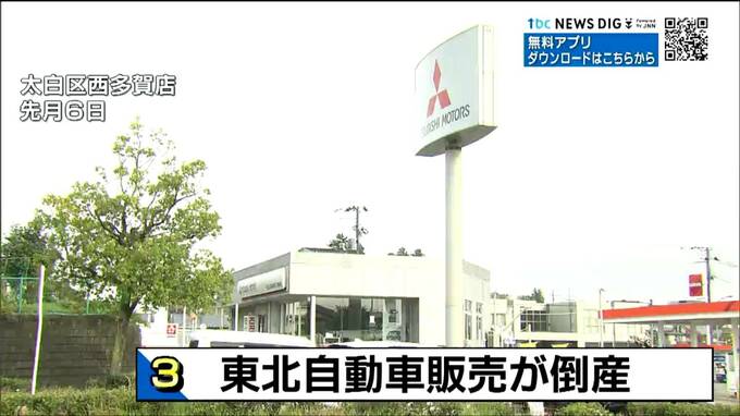 仙台市に本社を置く「東北自動車販売」(旧東北三菱自動車販売)が、事業を停止し、11月2日付けで仙台地方裁判所から破産手続きの開始決定を受けました。負債額はおよそ10億6000万円です。
