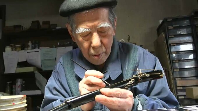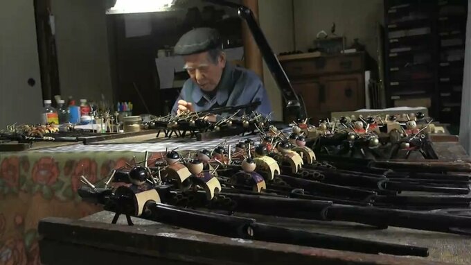 津山市の郷土玩具店「津山民芸社」を営む竹細工職人・白石靖さんの工房で制作が最盛期を迎えています。