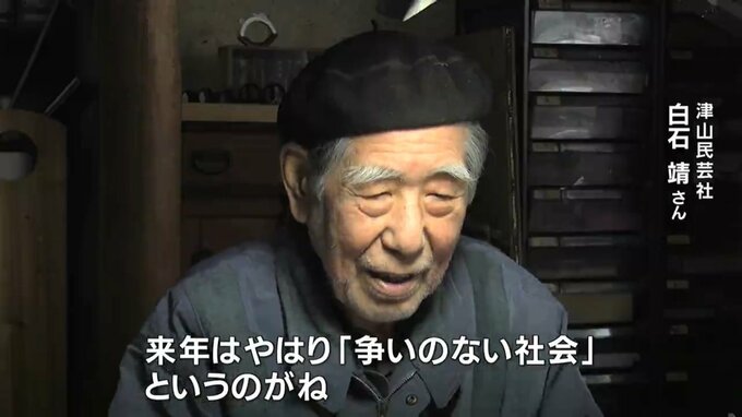 (津山民芸社 白石靖さん)「来年はやはり争いのない社会というのがね。今年のように人が死んでいくようなことが起きるということだけは無い社会になってほしいというのが一番ですね」