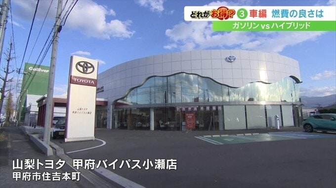(他の車種も)8万キロから10万キロ走行するのであれば、ハイブリッドの方がお得になる計算になっている。あくまで目安なので、お客様の乗り方によって提案している。