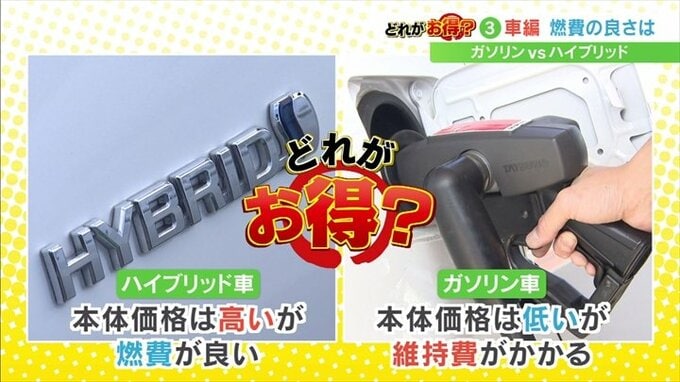 この両者を比較、価格は高いが燃費はいいハイブリッド、価格は低いが維持費がかかるガソリン車、どちらがお得なのでしょうか?