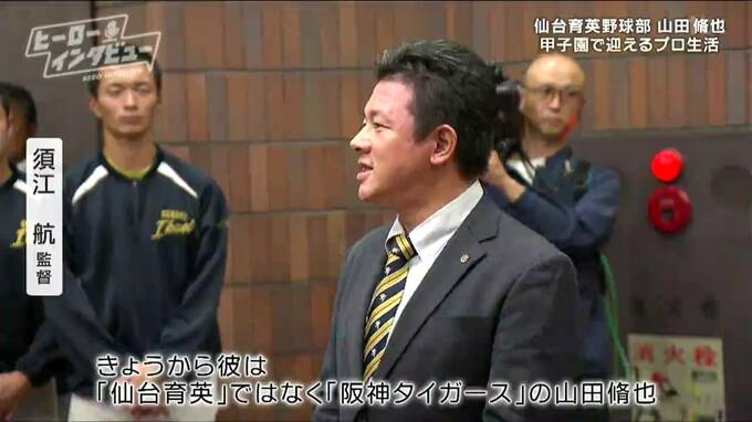 「今日から彼は”仙台育英”の山田脩也ではなくて、”阪神タイガース”の山田脩也にこれからなっていきますから。高校生みたいなことをしていたら活躍できないから、ドラフト3位に見合うようなパフォーマンスをださないといけない」