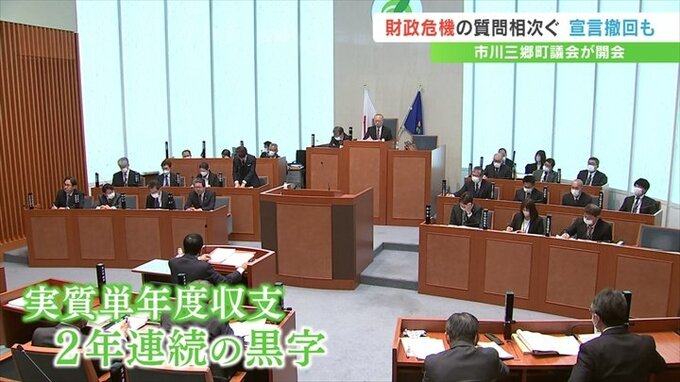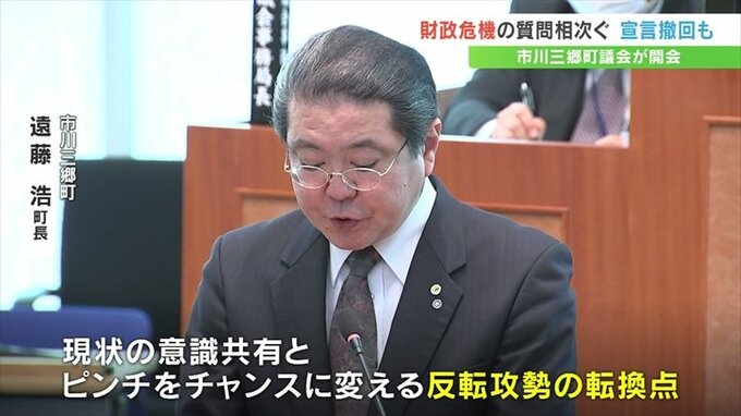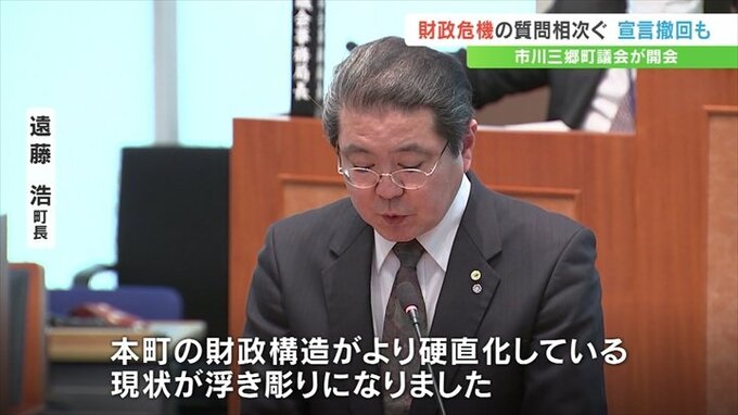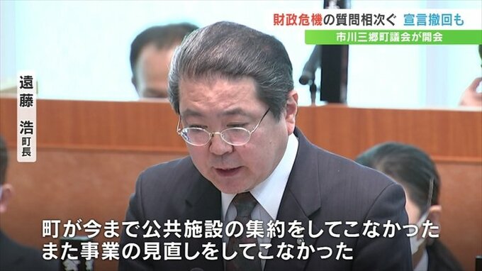 市川三郷町は7年後に町の貯金にあたる基金が底をつく恐れがあるとして、2023年9月「財政非常事態宣言」を出し、5日に宣言後初の定例議会が開かれました。