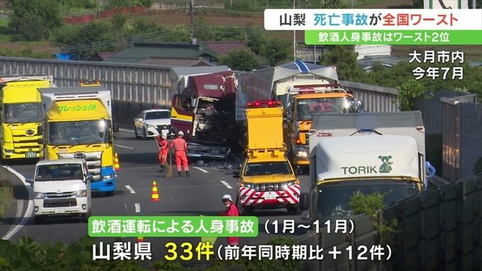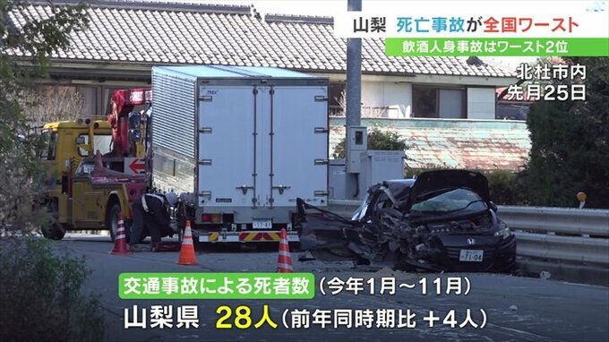 山梨県内で2023年、交通事故で死亡した人は28人で、人口10万人あたりで全国ワーストとなっています。