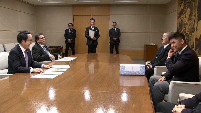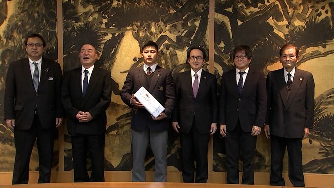 高校ラグビー香川県大会で優勝し、2年連続の花園出場を決めた高松北高校のラグビー部が香川県の池田知事に必勝を誓いました。