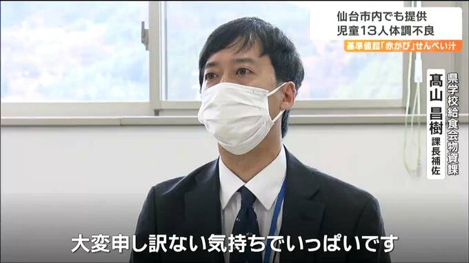 基準値を超える「赤かび」を含む小麦が学校給食で使われていた問題です。11月、仙台市内の小学校10校でもこの小麦を原料としたせんべい汁が提供され児童13人がおう吐や腹痛の症状を訴えていたことがわかりました。