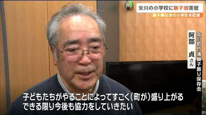 獅子舞いの伝承に取り組む子どもたちを応援します。宮城県女川町の小学校に5日、地元で獅子舞を受け継ぐ男性から獅子頭が贈られました。
