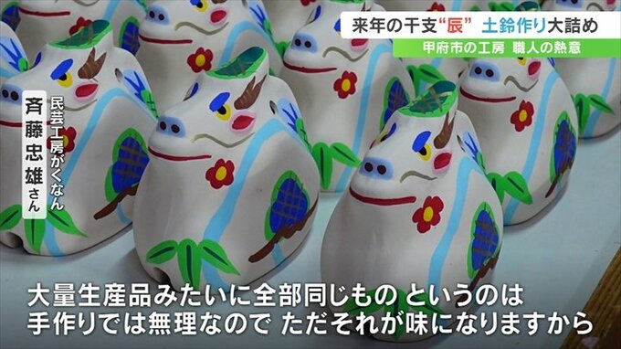 甲府市の工房で、来年の干支=辰を模った土鈴づくりが大詰めを迎えています。