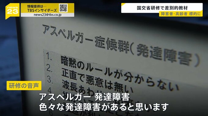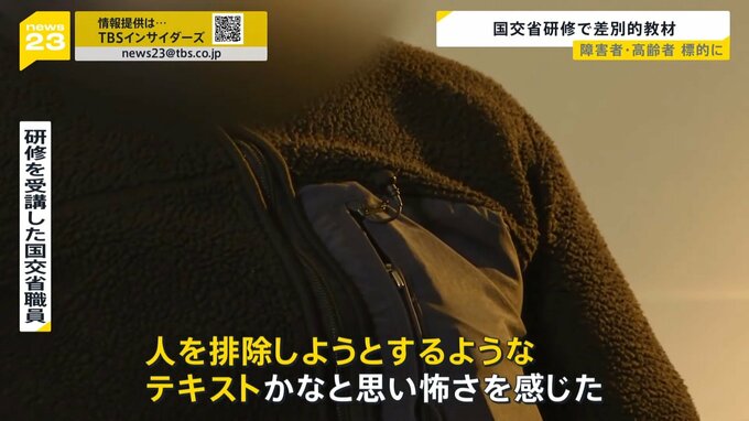 国土交通省の職員を対象にした研修で、10年間にわたって数々の差別的な内容が書かれた教材が使われていたことが分かりました。その矛先は障害や疾病がある人、さらには高齢者まで。問題の教材を作り、研修を担当した講師が取材に応じました。