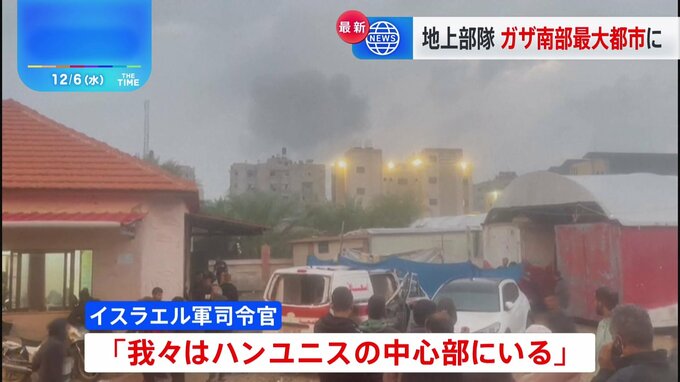イスラエル軍は、パレスチナ自治区ガザ南部の最大都市ハンユニスの中心部に地上部隊が入ったと発表しました。イスラエル軍の司令官は5日、「地上作戦が始まって以来、最も激しい戦闘の日を迎えている」などとする…